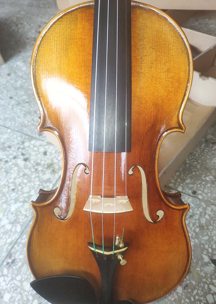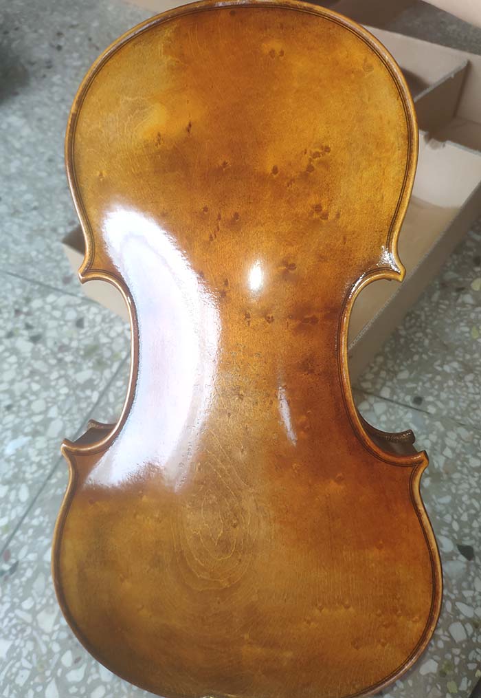 描述:背板是意大利的雀眼花紋的楓木,雀眼并不算很多,面板木質均勻,木紋的平均寬度在2.5毫米左右。油漆采用仿舊風格,顏色有深有淺,質感非常好。這把琴的聲音比較清晰干脆,婉轉悠揚,非常適合專業演奏和練習使用,更是當做禮物來贈送的不二之選。