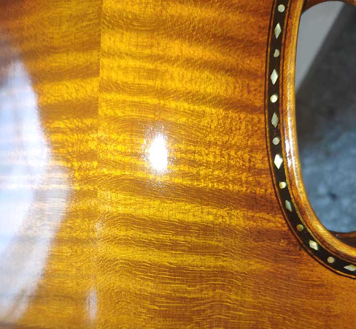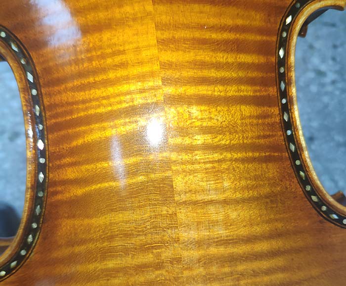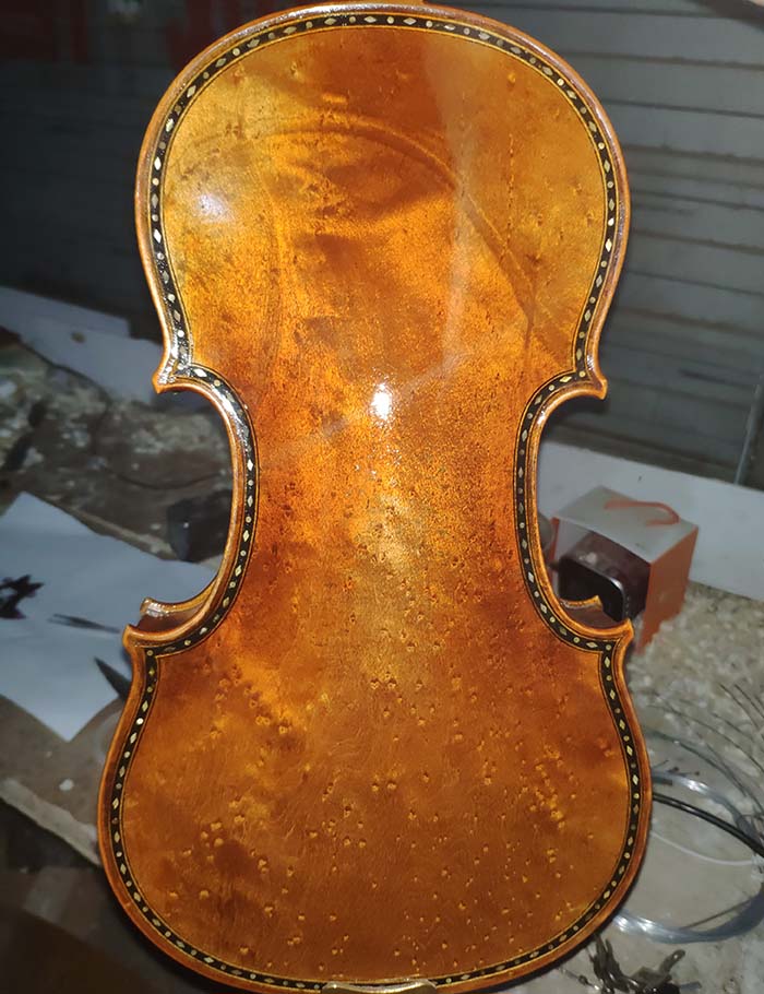 描述:一把非常漂亮的歐洲雀眼楓小提琴,面板采用的瑞士云杉木,背板采用的是歐洲雀眼楓木,雀眼非常多的那種。邊沿位置采用了貝殼鑲嵌,可以說是錦上添花、盡顯奢華。在音質(zhì)方面,我只能用溫文爾雅、玩轉(zhuǎn)多變來形容,因為這把琴聲音確實非常棒。